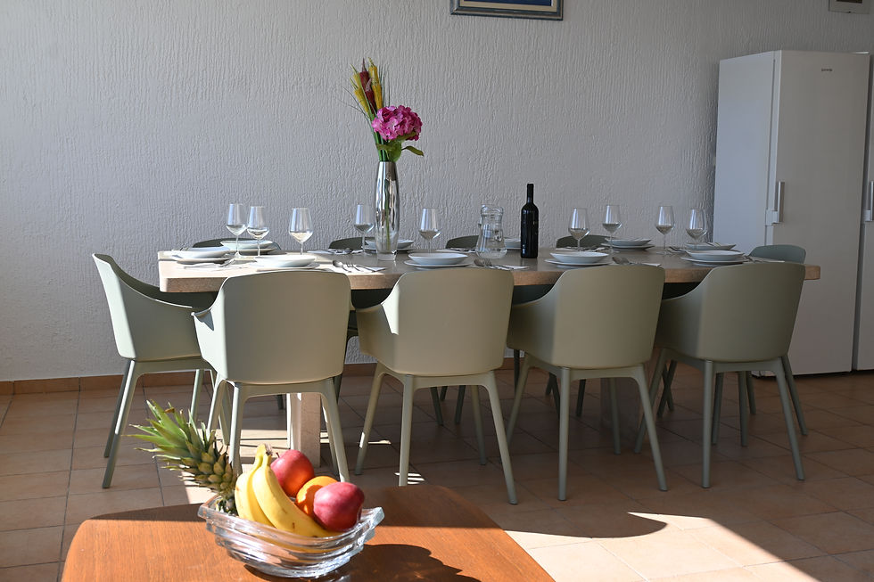 Vila se skládá z většího a menšího apartmánu s kapacitou 8-10 osob, ideální pro rodinnou dovolenou nebo skupinové návštěvy. Využijte prostornou kuchyň s jídelním koutem pro setkávání a společné stolování. Relaxujte na dvou terasách nebo se osvěžte v bazénu s prostorem na opalování. Ideální místo k úniku od každodenního stresu. Objekt má také soukromou pláž vzdálenou 30 metrů a kotviště pro lodě.